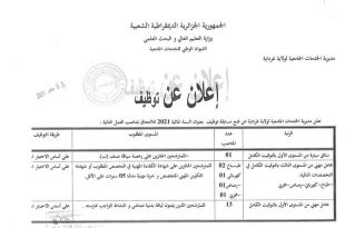 إعلان عن توظيف على أساس الإختبار المهني لأعوان متعاقدين لشغل مناصب عمل في مختلف مراكز التكوين المتواصل كما يلي : ads ✓ حارس : 01 (الجزائر العاصمة)✓ عامل مهني من المستوى الأول بتوقيت كامل(عاملة نظافة) : 05 (الجزائر العاصمة)✓ حارس : 08 (باتنة 02 …