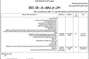 تعلن ادارة المؤسسة العمومية الاستشفائية علي النمر مروانة عن فتح مسابقة توظيف لسنة 2021 للالتحاق بالمناصب التالية ads طبيب عام في الصحة العمومية نمط التوظيف مسابقة على اساس الشهادة عدد المناصب 03 تاريخ نشر الاعلان : 29 جويلية 2021 اخر اجل لايداع الملفات 15 …