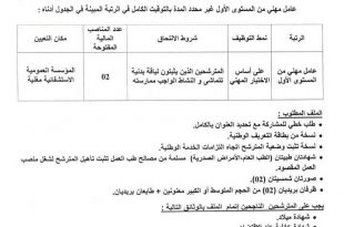 تعلن المؤسسة العمومية الاستشفائية بعقبة عن فتح توظيف لى اساس الشهادة وعن طريق الاختبار المهني في المناصب التالية ads طبيب عام في الصحة العمومية نمط التوظيف على اساس الشهادة عدد المناصب 08 عامل مهني من المستوى الاول نمط التوظيف على اساس الاختبار المهني عدد …