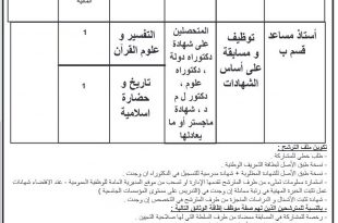 تعلن كلية العلوم الاسلامية بجامعة الجزائر 1 عن فتح توظيف على اساس الشهادة في المناصب المبينة ادناه ads استاذ مساعد قسم ب نمط التوظيف مسابقة على اساس الشهادات عدد المناصب 02 تاريخ نشر الاعلان : 22 جوان 2021 اخر اجل لايداع الملفات 15 يوم …