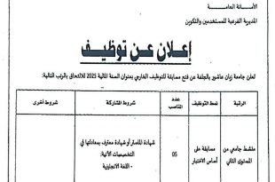 أكمل القراءة »إعلان عن مسابقات توظيف بجامعة زيان عاشور بالجلفة