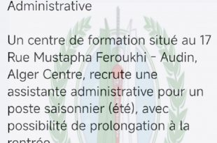 اعلان توظيف ads مركز تكوين واقع ب 17 شارع مصطفى فروخي، أودان، الجزائر الوسطى يوظف : مساعدة إدارية (Assistante Administrative) فترة العمل : شهري جوان و جويلية مع إمكانية التمديد لشهري سبتمبر و أكتوبر … مديرية التربية تفتح مسابقة توظيف العمال المهنيين 180 منصب …