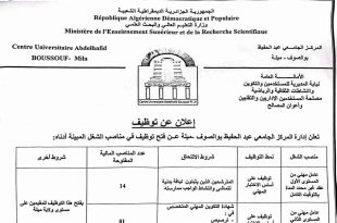 أكمل القراءة »إعلان عن توظيف في المركز الجامعي عبد الحفيظ بوالصوف