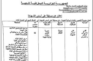 وزارة التعليم العالي والبحث العلمي جامعة عبد الرحمان ميرة – بجاية Université Abderrahmane Mira Bejaia ads إعلان عن توظيف تعلن جامعة عبد الرحمان ميرة – بجاية، عن توظيف بعنوان سنة 2025 في مناصب الشغل التالية: مديرية التربية تفتح مسابقة توظيف العمال المهنيين 180 منصب …