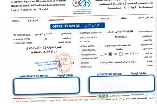 وزارة العمل والتشغيل والضمان الاجتماعي الوكالة الوطنية للتشغيل الفرع الولائي للتشغيل سكيكدة الملحقة المحلية للتشغيل سكيكدة ads عرض عمل الهيئة المستخدمة: البنك الوطني للإسكان BNH تاريخ التسجيل: 28/05/2025 نوع العقد: CDD مديرية التربية تفتح مسابقة توظيف العمال المهنيين 180 منصب سوناطراك توظف في التخصصات …