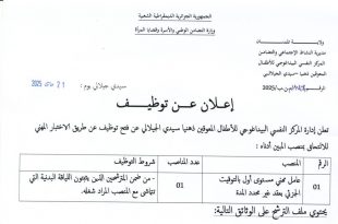 إعلان عن توظيف في المركز النفسي البيداغوجي للأطفال المعوقين ذهنيا سيدي الجيلالي