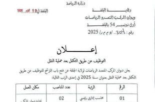 أكمل القراءة »اعلان توظيف عن طريق التكفل بعد عملية النقل بديوان المركب المتعدد الرياضات