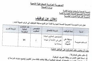 أكمل القراءة »اعلان عن عرض عمل في مؤسسة وطنية اقتصادية