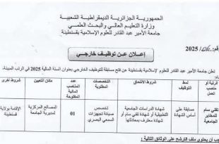 إعلان عن توظيف خارجي في جامعة الأمير عبد القادر للعلوم الإسلامية بقسنطينة
