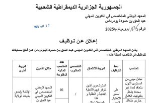 المعهد الوطني المتخصص في التكوين المهني عبد الحق بن حمودة بومرداس ads إعلان عن توظيف يعلن المعهد الوطني المتخصص في التكوين المهني عبد الحق بن حمودة ببومرداس عن فتح مسابقات للتوظيف في المناصب المبينة أدناه: يجب أن يحتوي ملف الترشح على الوثائق التالية: طلب …