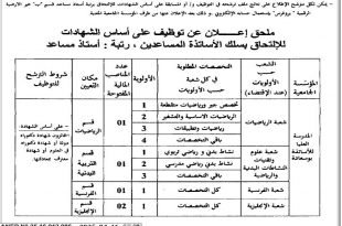 أكمل القراءة »إعلان عن توظيف على أساس الشهادات للالتحاق بسلك الأساتذة المساعدين رتبة: أستاذ مساعد