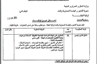 إعلان عن توظيف بمديرية التعمير و الهندسة المعمارية و البناء لولاية الجلفة