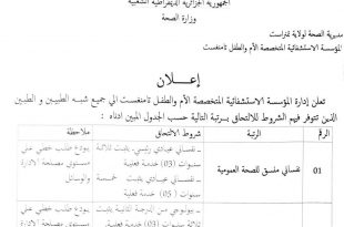 إعلان عن توظيف بالمؤسسة الاستشفائية المتخصصة الأم والطفل تامنغست