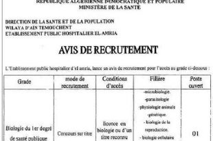أكمل القراءة »إعلان توظيف في المؤسسة العمومية الاستشفائية العامرية ولاية عين تموشنت