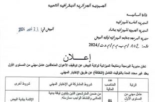 اعلان عن توظيف بمديرية البرمجة ومتابعة الميزانية لولاية البيض