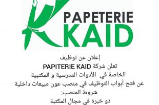 إعلان عن توظيف بشركة PAPETERIE KAID المتخصصة في الادوات المدرسية بالجزائر العاصمة