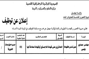 إعلان عن توظيف بمديرية التعمير و الهندسة المعمارية والبناء لولاية جيجل