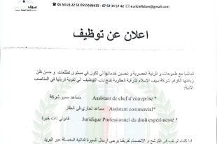 سيف الاسلام للترقية العقارية ولاية بومرداس ads إعلان عن توظيف تماشيا مع طموحات و الرؤية العصرية و تحسين خدماتها لكي تكون في مستوى تطلعات و حسن ظن زبائنها الكرام، شركة سيف الإسلام للترقية العقارية تفتح باب التوظيف لى تقوية فريقها في المناصب الآتية: مساعد …