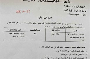 وزارة المجاهدين وذوي الحقوق مديرية المجاهدين وذوي الحقوق لولاية تيبازة ads إعلان عن توظيف تعلن مديرية المجاهدين وذوي الحقوق لولاية تيبازة، عن فتح إختبار مهني للالتحاق بمنصب شغل عامل مهني من المستوى الأول بالتوقيت الكامل و بعقد غير محدد المدة. الرتبة: عامل مهني من …
