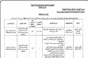 الجمهورية الجزائرية الديمقراطية الشعبية وزارة الصحة مديرية الصحة والسكان لولاية تبسة ads إعلان عن توظيف تعلن إدارة المؤسسة العمومية الاستشفائية عاليا صالح تبسة، عن فتح توظيف مباشر على أساس الشهادة للالتحاق برتبة مساعد تمريض للصحة العمومية لفائدة خريجي مدارس التكوين الخاصة: جميع مسابقات وإعلانات …