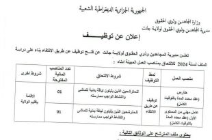 إعلان عن توظيف بمديرية المجاهدين وذوي الحقوق لولاية جانت
