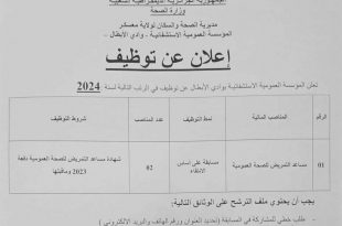 أكمل القراءة »مديرية الصحة والسكان لولاية معسكر تعلن عن توظيف لسنة 2024