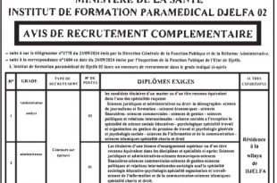 أكمل القراءة »إعلان عن مسابقة توظيف بمعهد التكوين شبه الطبي الجلفة 02