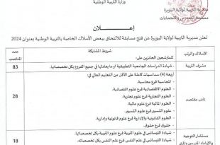 أكمل القراءة »إعلان عن توظيف بمديرية التربية لولاية تيبازة (111 منصب)