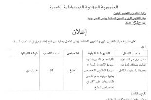 إعلان عن توظيف بمركز التكوين المهني والتمهين المختلط يونس لكحل بجاية