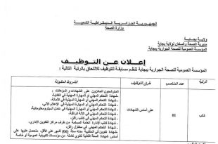 إعلان عن توظيف بالمؤسسة العمومية للصحة الجوارية بمعسكر