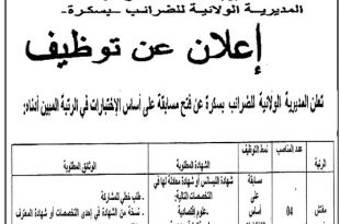 أكمل القراءة »اعلان عن توظيف بالمديرية الولائية للضرائب لولاية ميلة
