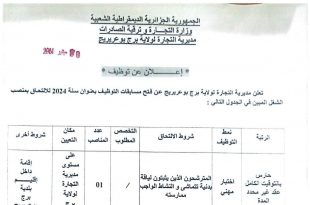 أكمل القراءة »مديرية التجارة لولاية برج بوعريريج تعلن عن توظيف