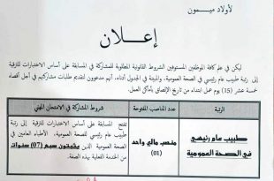 أكمل القراءة »مديرية الصحة والسكان لولاية تلمسان تعلن عن مسابقة على اساس الاختبارات