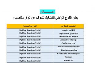 أكمل القراءة »مؤسسة عمومية تبحث عن سائق مقطورة حاملة الآليات (Conducteur porte engin)