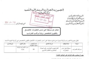 مديرية التربية لولاية باتنة ads الترقية عن طريق التأهيل كل ما يخص التسجيل على قوائم التأهيل لسنة2024. مراسلة مماثلة تجدونها على مستوى المؤسسات التربوية . جميع مسابقات وإعلانات التوظيف نوفمبر 2025 إعلان عن مسابقة توظيف بالمعهد التقني لزراعة البقول والزراعات الصناعية بالجزائر العاصمة ووهران …