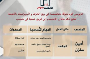 أكمل القراءة »شركة فايونس كوم المتخصصة في بيع الخزف والسيراميك بالجملة توظف