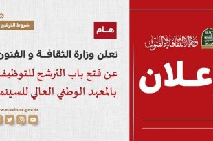 اعلان توظيف وزارة الثقافة والفنون الجزائرية ads تُعلن وزارة الثقافة والفنون عن فتح باب الترشح للتوظيف بالمعهد الوطني العالي للسينما حسب الشروط المرفقة في الروابط أدناه. يتم استقبال ملفات المترشحين الراغبين في التوظيف على مستوى دار الثقافة بالقليعة، وهذا في أجل لا يتعدى (15) …