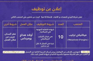 أكمل القراءة »إعلان عن توظيف بشركة البردي للمعدات والآليات Sarl El Bordi