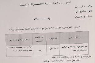 إعلان عن مسابقة توظيف ببلدية أولاد تبان ولاية سطيف