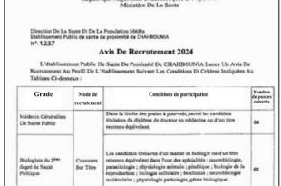 إعلان عن توظيف بالمؤسسة العمومية الاستشفائية بمجانة برج بوعريريج
