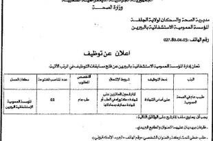 أكمل القراءة »إعلان عن توظيف بالمؤسسة العمومية الاستشفائية البيرين الجلفة