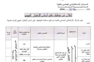 أكمل القراءة »تعلم ملحقة التشغيل طالبي العمل المسجلين والذين تتوفر فيهم الشروط التالية الإلتحاق بالملحقة المحلية للتشغيل قبل يوم 2024/08/07