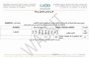 الوكالة الوطنية للتشغيل الفرع الولائي للتشغيل بورقلة ads تعلن الوكالة الوطنية للتشغيل، الفرع الولائي للتشغيل بورقلة، عن توزيع عروض عمل مسجلة لديها على الملاحق المحلية للتشغيل، وذلك في إطار سعيها لتعزيز فرص العمل وتوفير احتياجات سوق العمل من اليد العاملة المؤهلة. معلومات العرض: رقم …