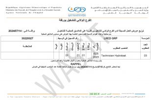 الجمهورية الجزائرية الديمقراطية الشعبيةوزارة العمل، والتشغيل، والضمان الاجتماعيالوكالة الوطنية للتشغيلالملحقة المحلية للتشغيل ببرج بوعريريج ads تعلن الملحقة المحلية للتشغيل طالبي العمل المودعين في القائمة الاسمية لدى المؤسسة الوطنية لتجهيزات ورشة 60 للتخصصات التالية: ممرض (infirmier) ميكانيكي هيدروليك (mécanicien hydraulicien) موجه رافعة (catputsher) بأن الفحص …