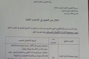 أكمل القراءة »اعلان عن فتح باب الترشح لشغل مناصب عليا في مركز التكوين المهني والتمهين عين ارنات سطيف