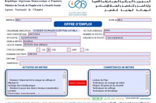 الفرع الولائي للتشغيل ميلة – AWEM Mila ads عرض عمل بالملحقة المحلية للتشغيل ميلة : المؤسسة : كوسيدار بناء Cosider Construction المنصب : عامل يدوي العدد : 05 المنصب : Ferrailleur العدد : 05 المنصب : Coffreur العدد : 04 إعلان عن مسابقة توظيف …