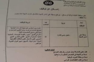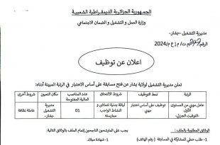 أكمل القراءة »إعلان عن توظيف بمديرية التشغيل لولاية بشار