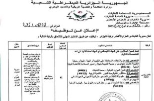 أكمل القراءة »إعلان عن توظيف بمديرية الغابات لولاية الجزائر