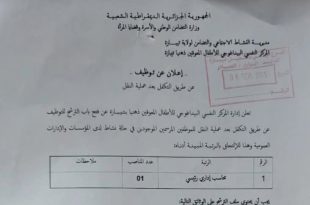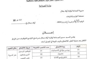 أكمل القراءة »عن فتح الترشح للتوظيف عن طريق التكفل بعد عملية النقل بمديرية الصناعة لولاية أولاد جلال
