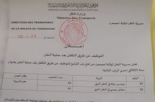 أكمل القراءة »اعــــــلان توظيف بمديرية النقل لولاية تيميمون